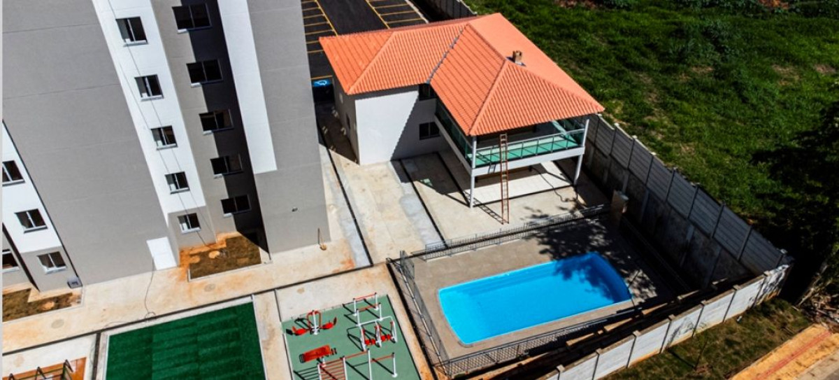 Composto por 02 quartos, banheiro social, sala, cozinha, área de serviço e uma vaga de garagem