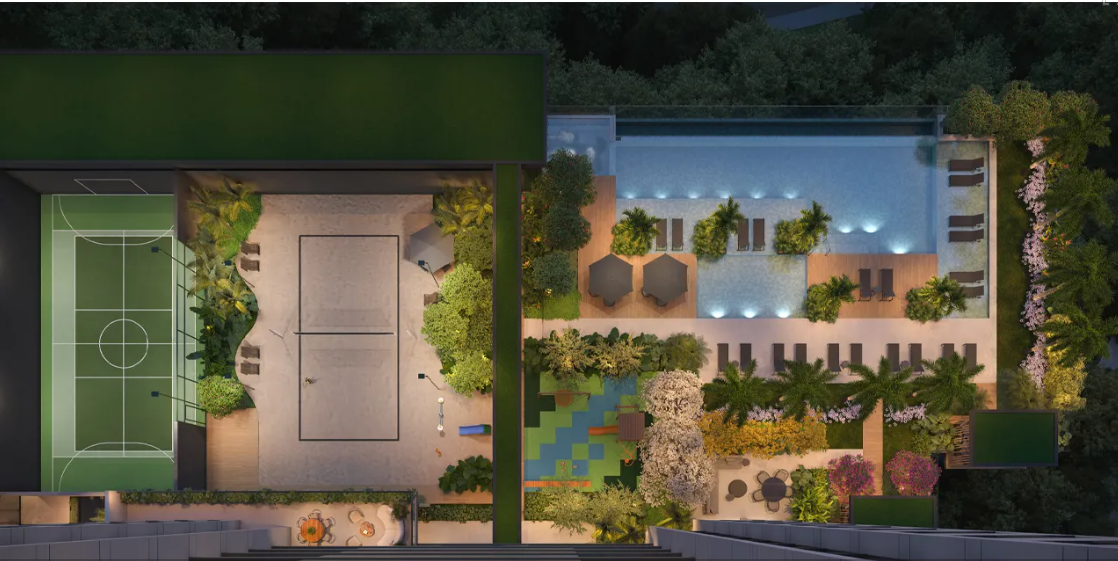 Além disso, a disposição inteligente das unidades favorece ventilação cruzada e iluminação natural abundante, criando ambientes mais agradáveis e eficientes no dia a dia.