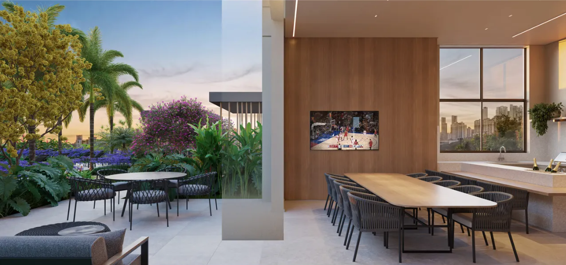 Além disso, a disposição inteligente das unidades favorece ventilação cruzada e iluminação natural abundante, criando ambientes mais agradáveis e eficientes no dia a dia.