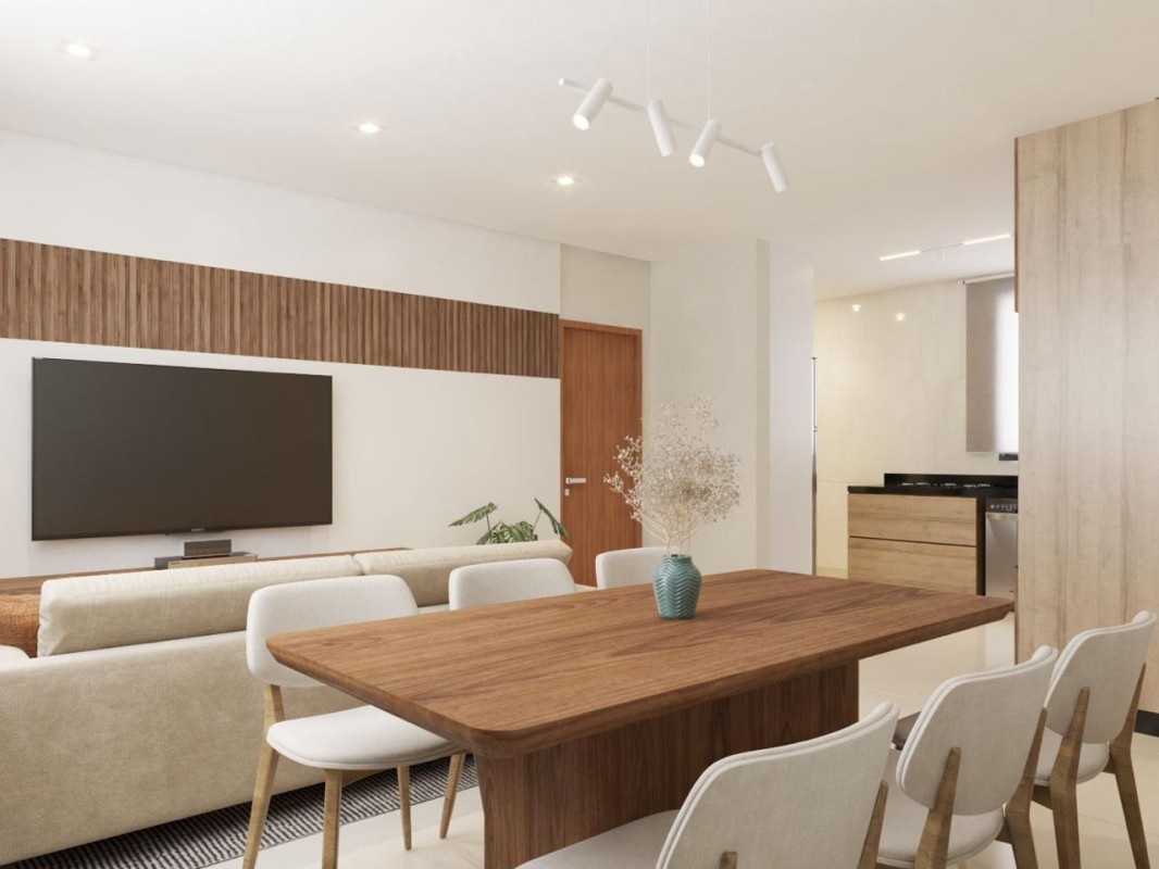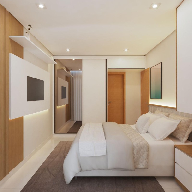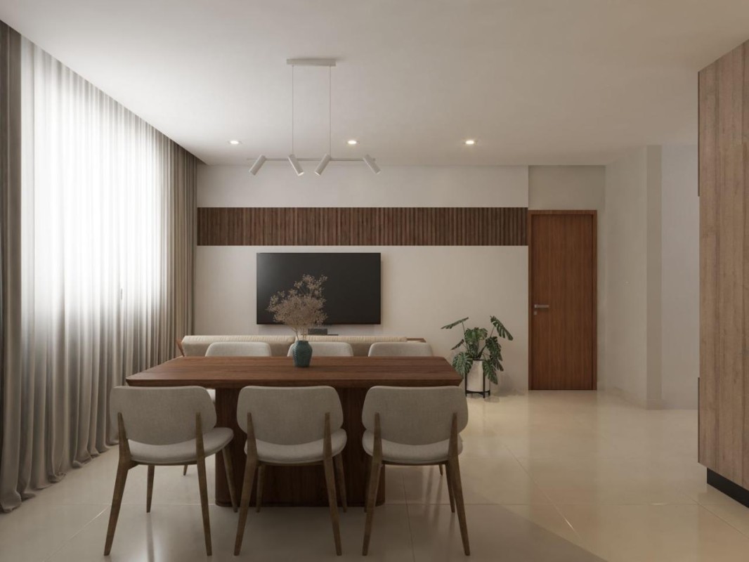 Apartamento com 92,57m² de área total aproximada, área construída 86,92m², are externa 15,65m², composto por 3 quartos sendo 1 suíte com varanda, banho social, sala para dois ambientes, cozinha e área de serviço, espaço para 02 (duas) vagas em linha .