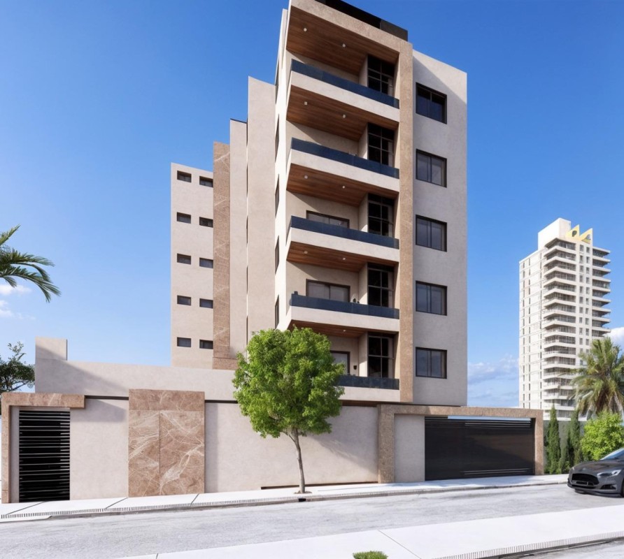 Fachada do prédio com design moderno e diferenciado, toda revestida em porcelanato aerado, tipo de construção estrutural, medidor de agua individual, pré-disposição para ar condicionado.