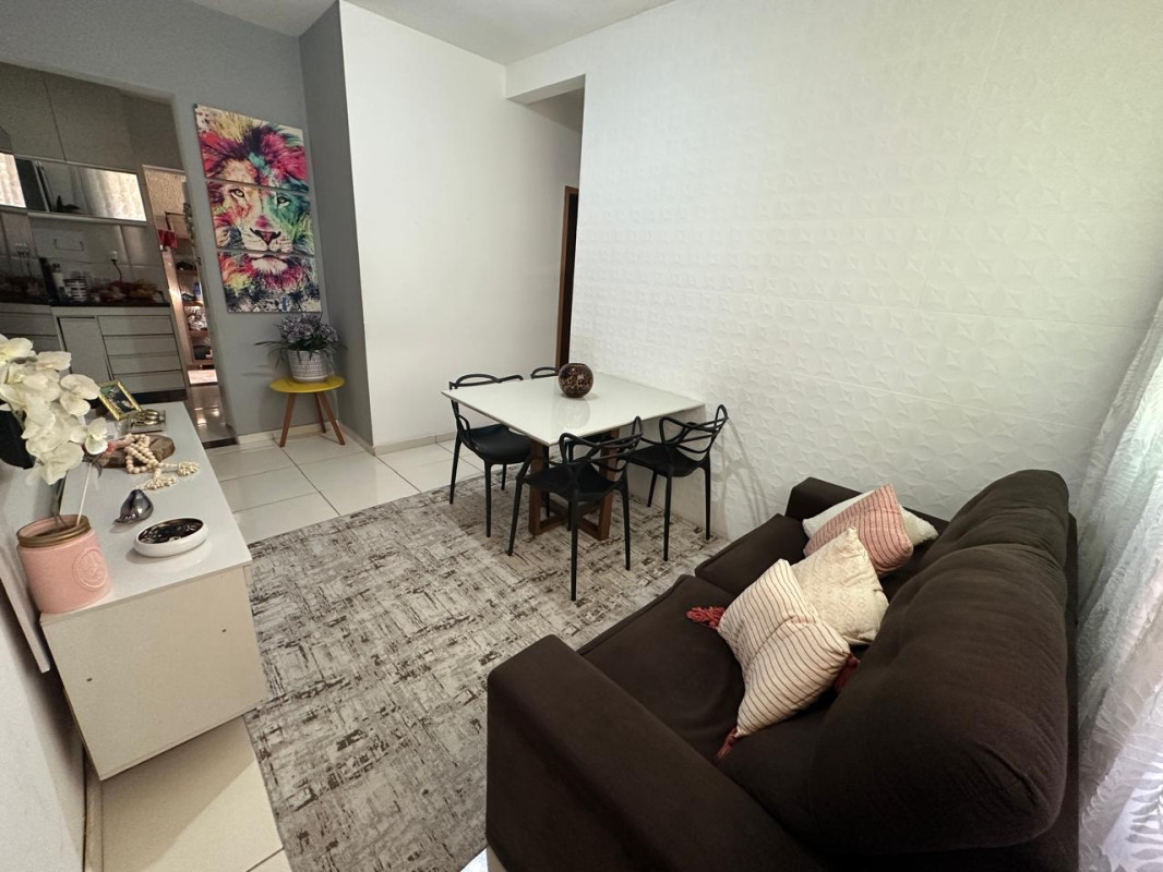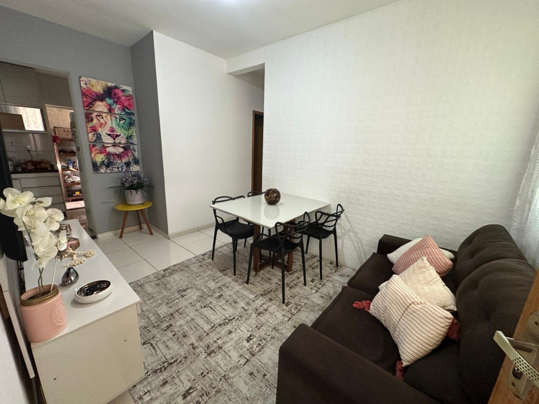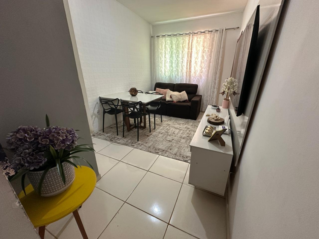 O imóvel conta com 3 dormitórios, sendo 1 suíte, proporcionando mais conforto e privacidade. A área interna é bem distribuída, com sala aconchegante, cozinha funcional com armários planejados, além de banheiro social com box, pia em granito e armário. Todo o apartamento possui revestimento em cerâmica, garantindo praticidade e fácil manutenção.