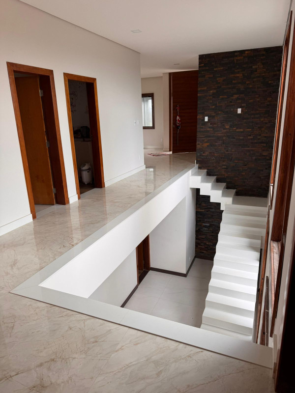 Construído em um amplo terreno de 1.000 m², o imóvel possui pé-direito duplo, proporcionando mais iluminação natural, ventilação e uma sensação de amplitude sofisticada.