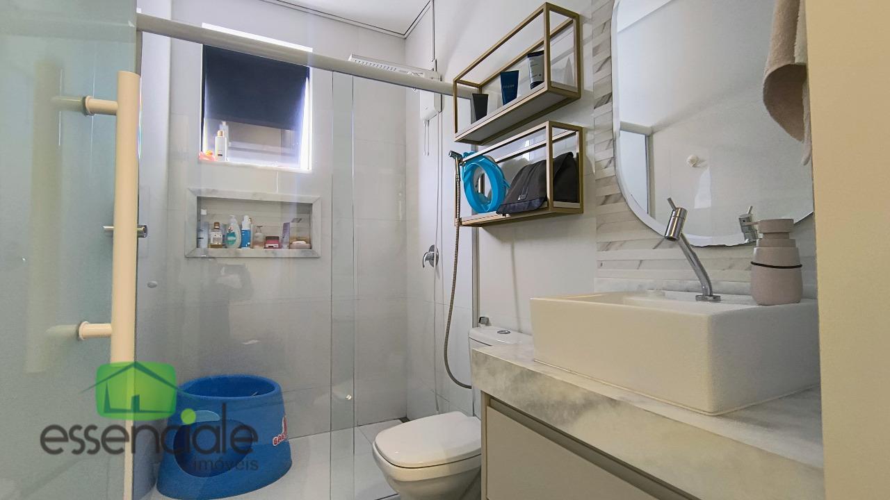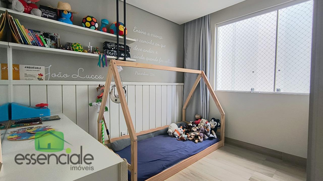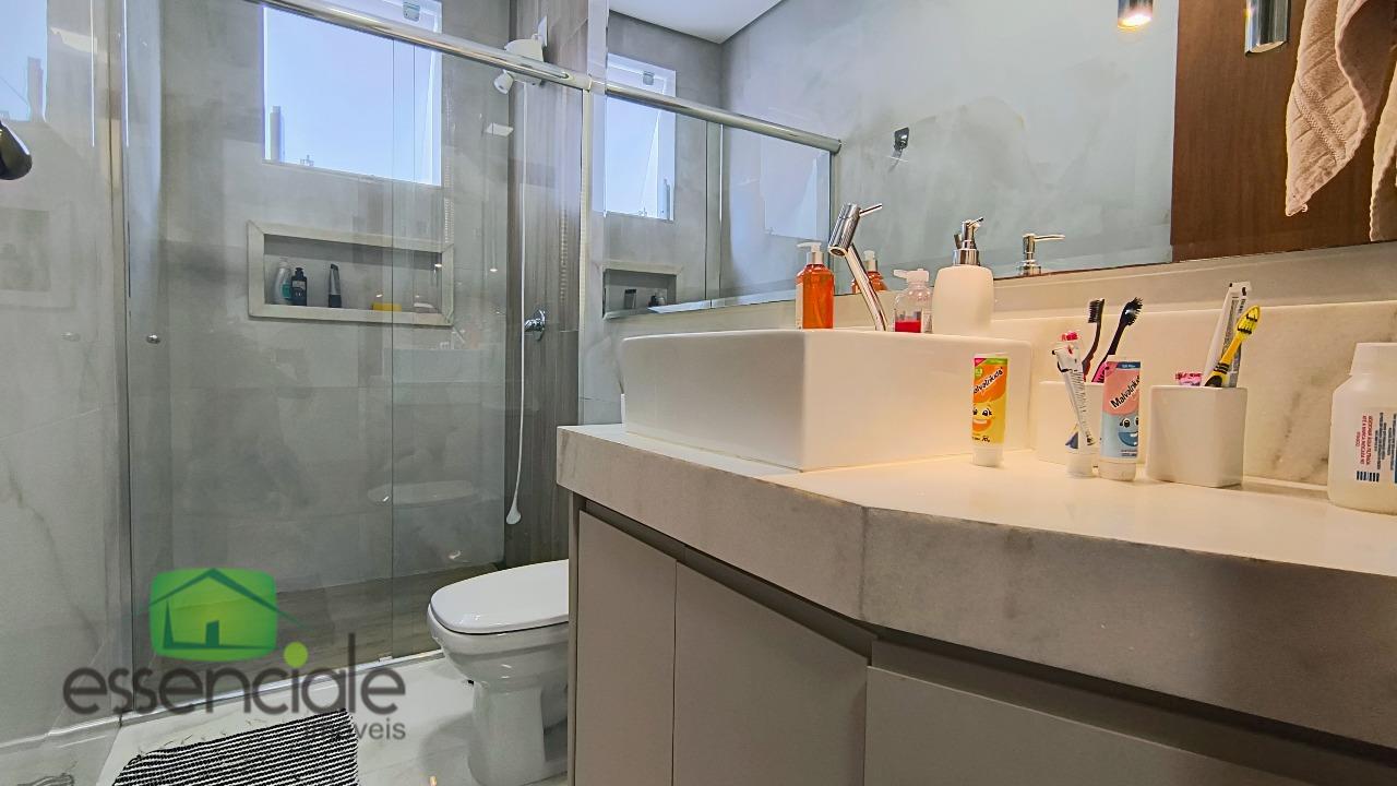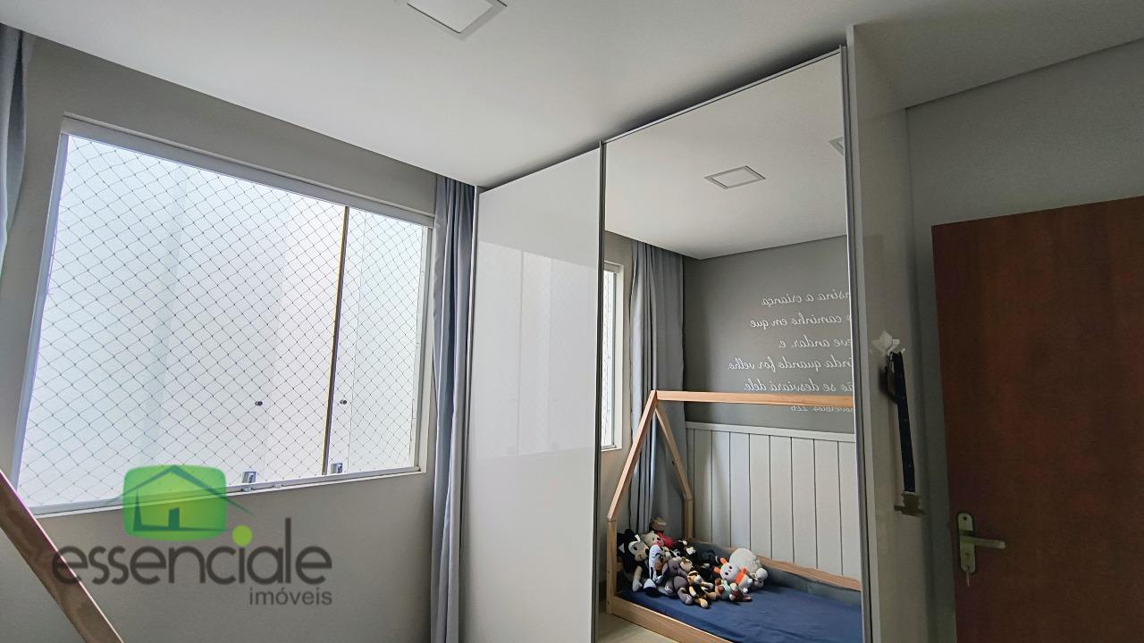 Três quartos, sendo um suíte com armário e roupeiro planejados, painel da cama com armários de cabeceira, pré disposição para ar condicionado, banho com armário, espelho, nicho e box, acabamento em porcelanato.