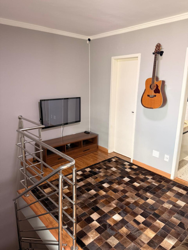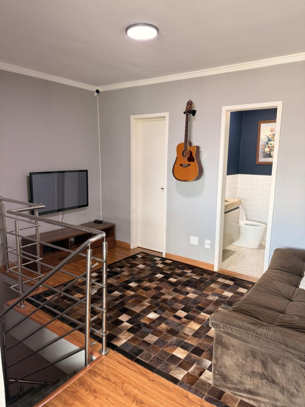 Cobertura com 90 m² de área total com dois pavimentos sendo:
